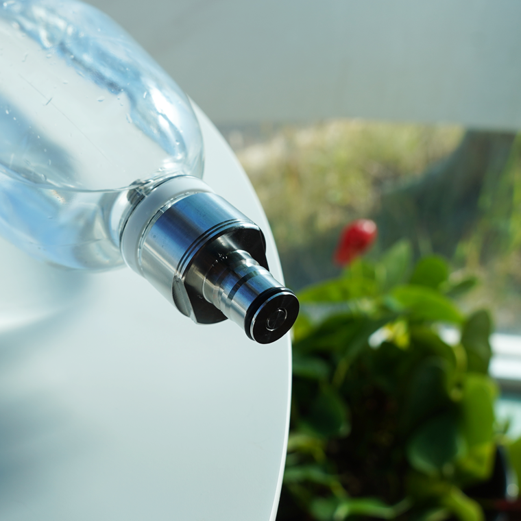 ステンレス製で剛性が強化され、耐久性が格段に向上しました。内部にはBeeタン特許技術のインジェクションバルブを継承し、炭酸ガス注入中も飲料の逆流を防ぎ、安心して炭酸水を作ることができます。