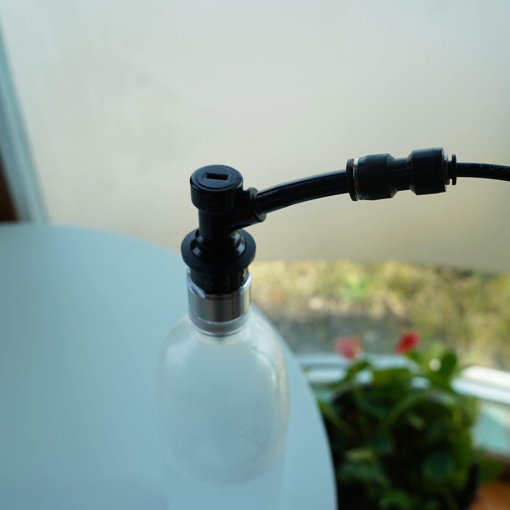※従来品の場合、特に炭酸注入後の取り外しが少しコツも必要でしたが、メタルキャップでは簡単に脱着することができます。(※こちらのメタル専用コネクタは従来のスタンダードキャップ用チューブに接続して使用します)