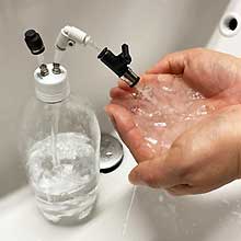 炭酸注入時には逆流防止の弁がついていますのでBeeタンの炭酸注入キャップと同じように強炭酸水を作ることが出来ます。ペットボトルに6割程度の冷やした浄水(5℃)を入れて、ガス圧4気圧程度で強炭酸水をつくります。